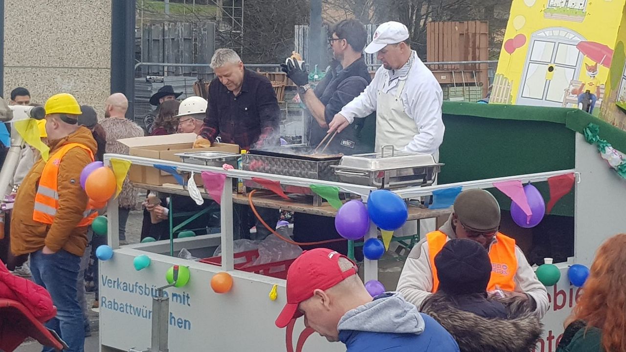 Die Zuschauer fanden es mal wieder eine tolle Idee und am Ende des Umzugs waren auch alle Würstchen/Brötchen an den Mann/Frau gebracht.