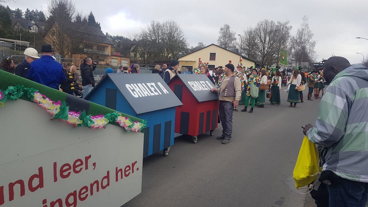 Es wurde dasselbe Equipment wie vergangenes Jahr verwendet, also Hänger von der Fa. Breuer-Koch und der Traktor von Hermann Koch. Der Obermeister und Sohn Fabian erstellten wieder die Planung und den Zuschnitt mit allem Drum und Dran. Bei den 4-5 Arbeitstreffen bis zum Umzug wurde durch die rege Teilnahme der Handwerker wieder ein gelungener Karnevalswagen präsentiert.